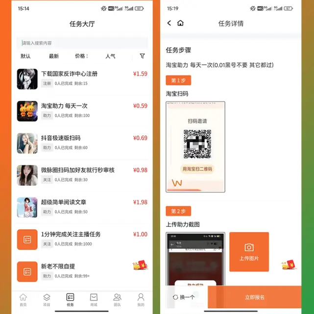 做任务平台 悬赏任务平台 app拉新 点赞关注等做任务 系统 源码 平台 软件 开发