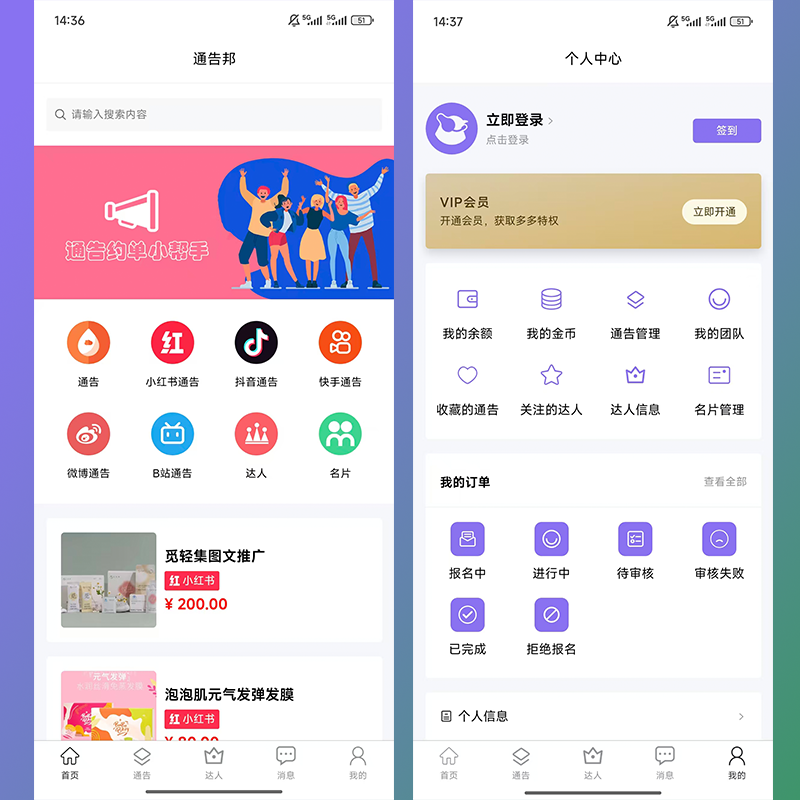 1,通告订单完成后,平台自动结算佣金到达人的钱包中