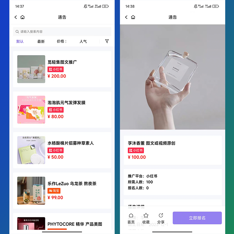 2,平台可以设置通告平台,如:小红书、抖音、快手等