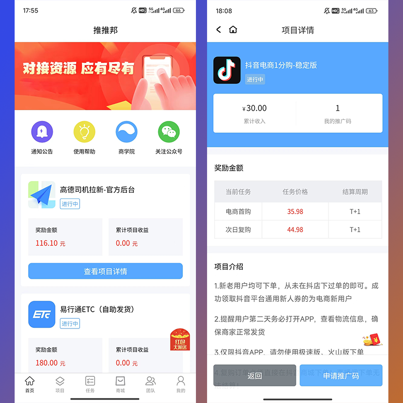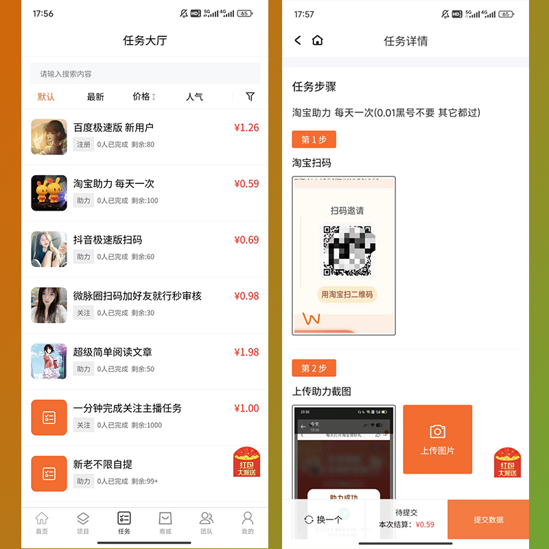 2,悬赏任务、放单任务、任务佣金平台;